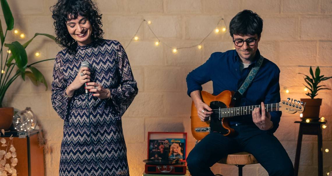 La voix de Charlotte qui flotte sur les notes de guitare de Sébastien, les deux se mélangeant dans des nuances pastels.